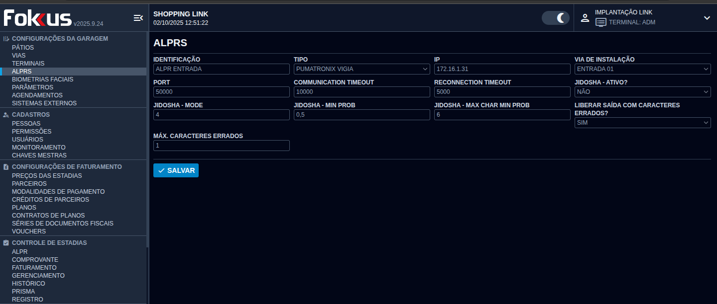 O sistema FOKUS possui uma configuração que permite liberar a saída do veículo mesmo quando alguns caracteres da placa não coincidirem exatamente entre a entrada e a saída.