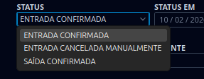 Clique no campo STATUS e selecione ENTRADA CANCELADA MANUALMENTE