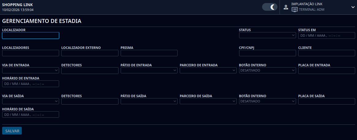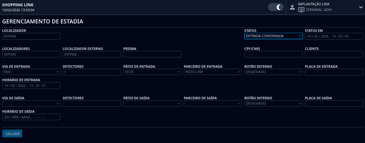 Uma estadia pode ser cancelada manualmente através do menu <GERENCIAMENTO> dentro de <CONTROLE DE ESTADIAS>.