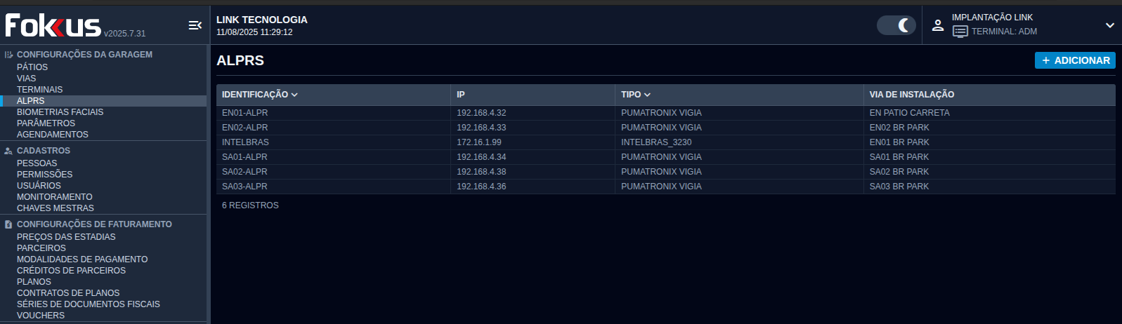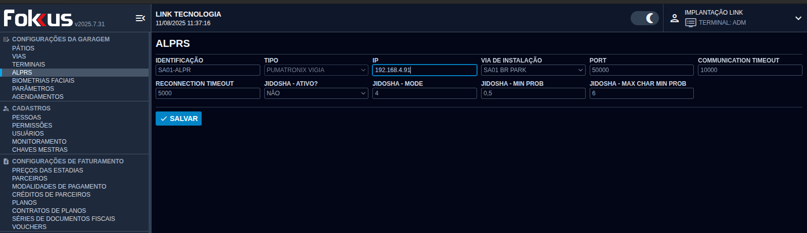 Quando o IP de uma câmera ALPR é alterado, é necessário atualizar o apontamento no sistema Fokus para restabelecer a comunicação com o algoritmo de reconhecimento de placas.