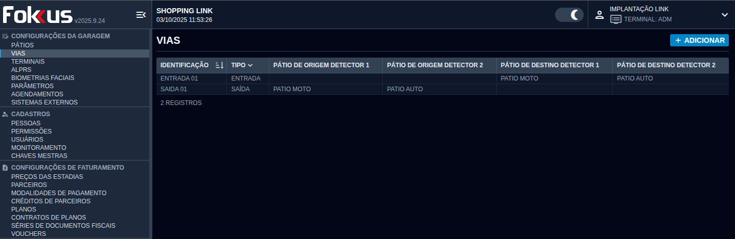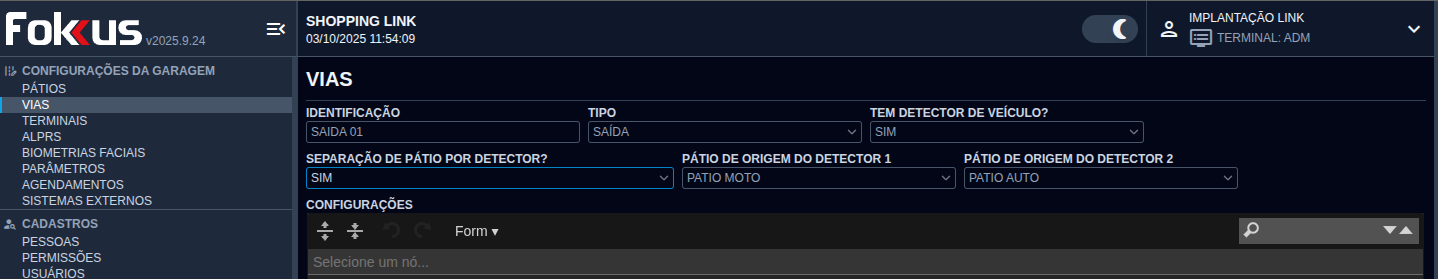 - ✅ Configurar vias de saída (com ou sem regras de controle)