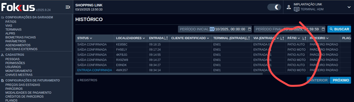 Observação: Além da separação física de veículos, os pátios também podem ser usados para diferenciar valores de cobrança.