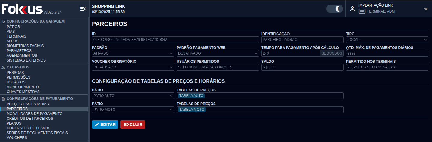- ✅ Vincular pátios às tabelas no cadastro de parceiros
