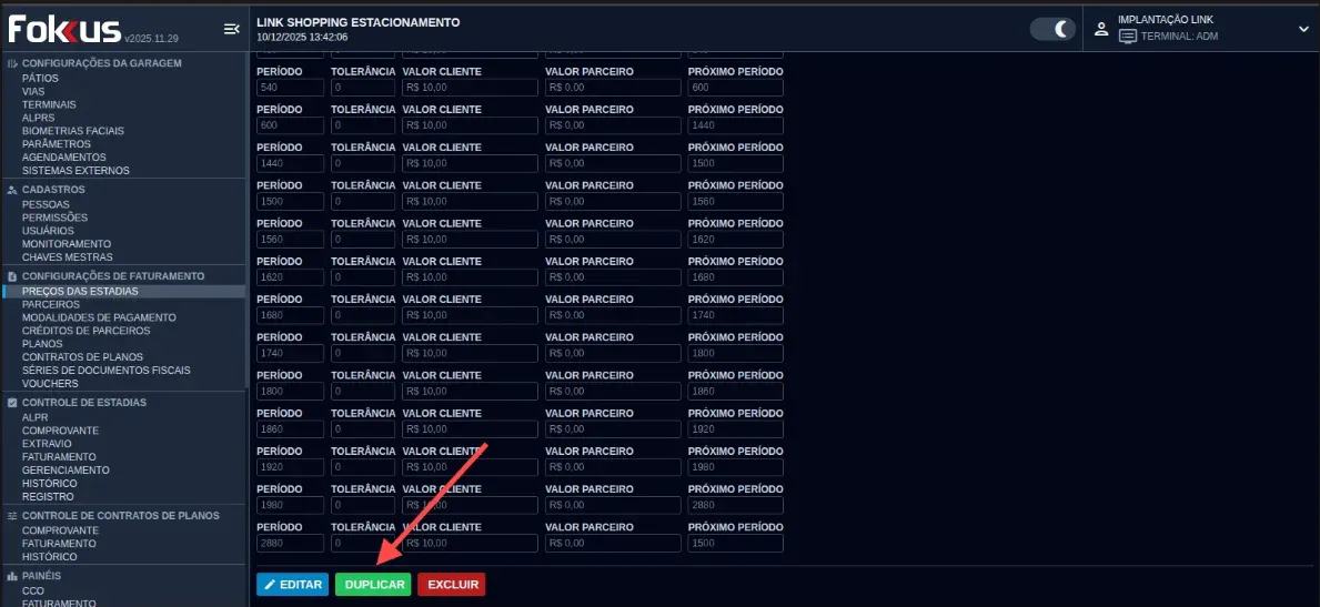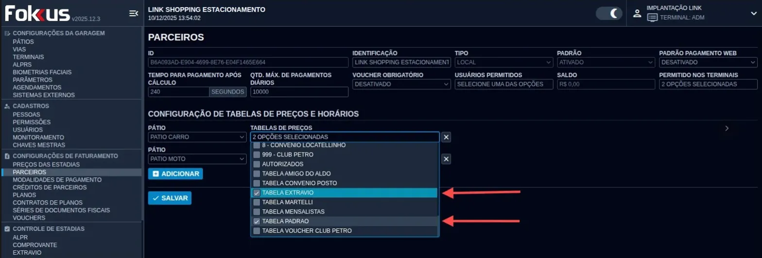 - Selecione o PARCEIRO PADRÃO (o próprio estacionamento - com padrão ATIVADO)