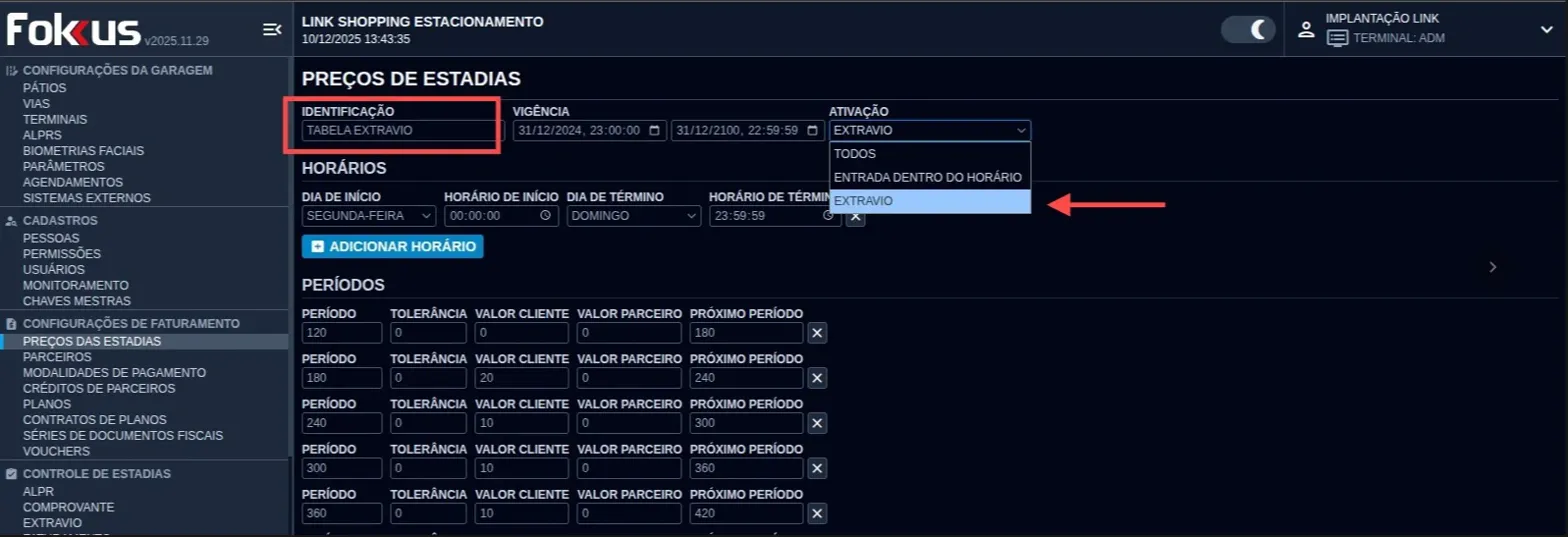 Como configurar / usar extravio no sistema (preço fixo ou por horário de entrada)?