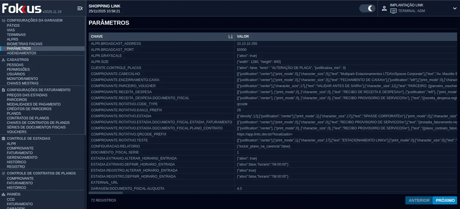 - No sistema Fokus, clique no menu lateral PARÂMETROS