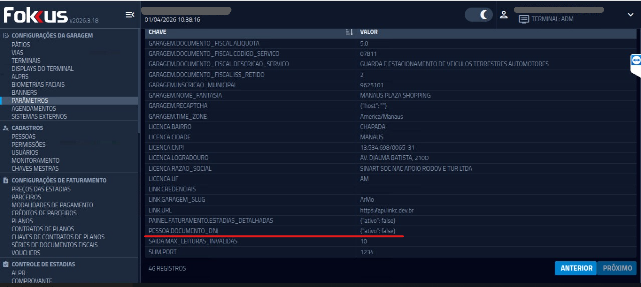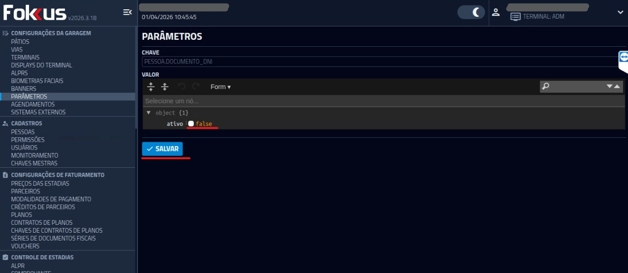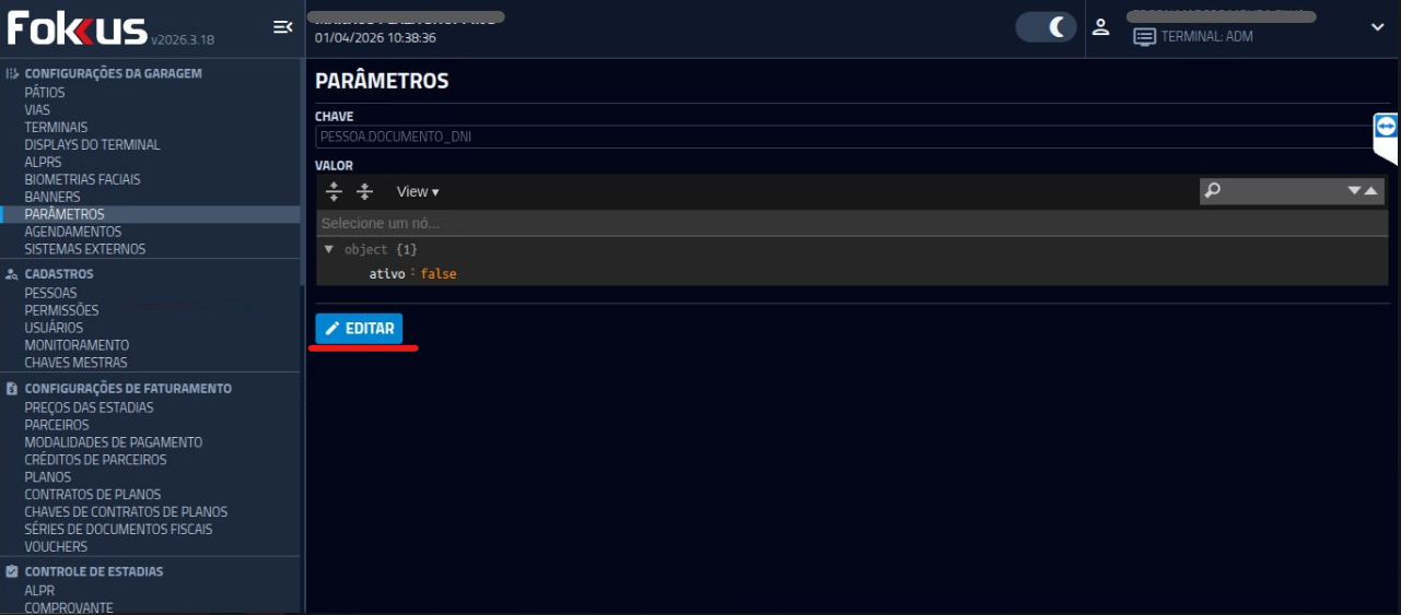3- Avance as telas até encontrar o parâmetro "PESSOA_DOCUMENTO_DNI". Clique para abrir a tela de configuração.