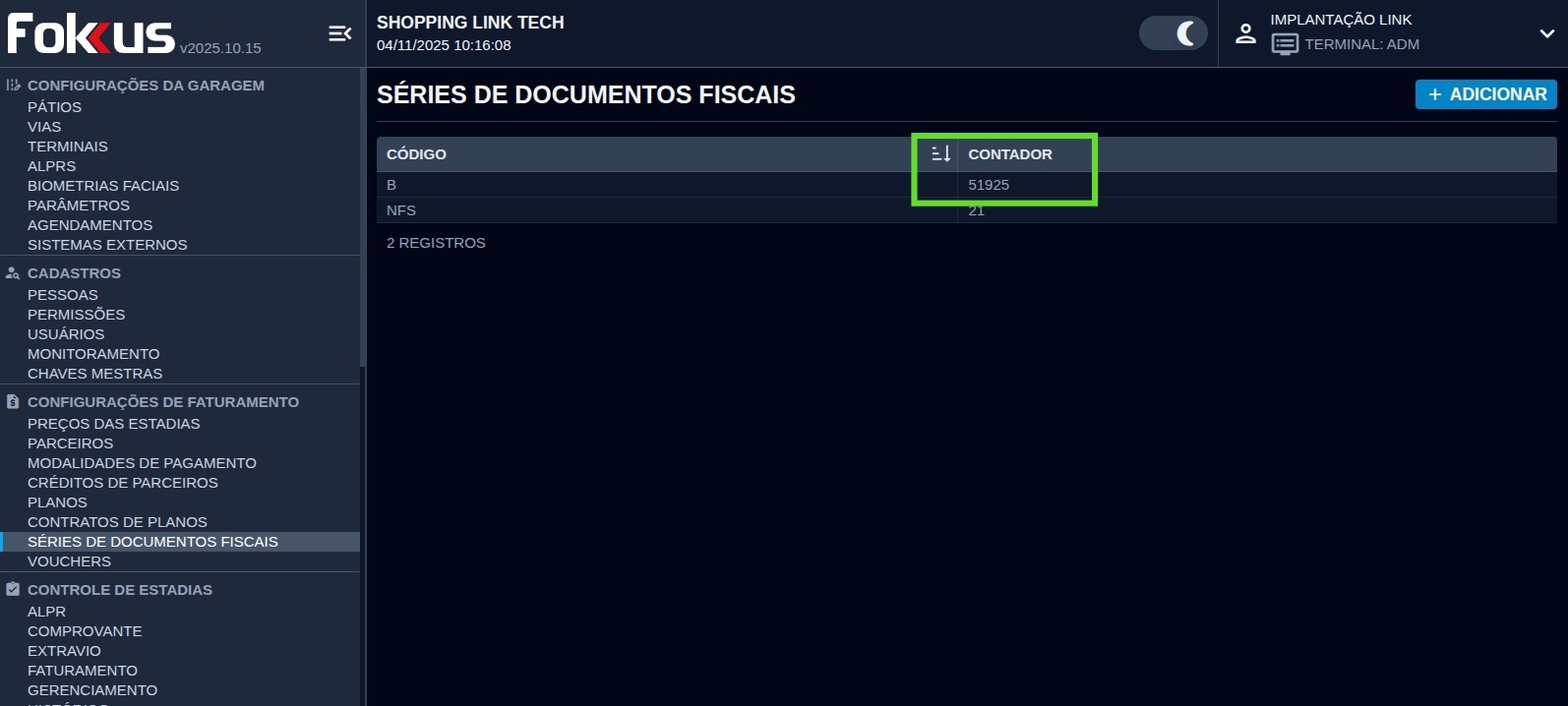 - O contador será atualizado automaticamente em Séries de documentos fiscais