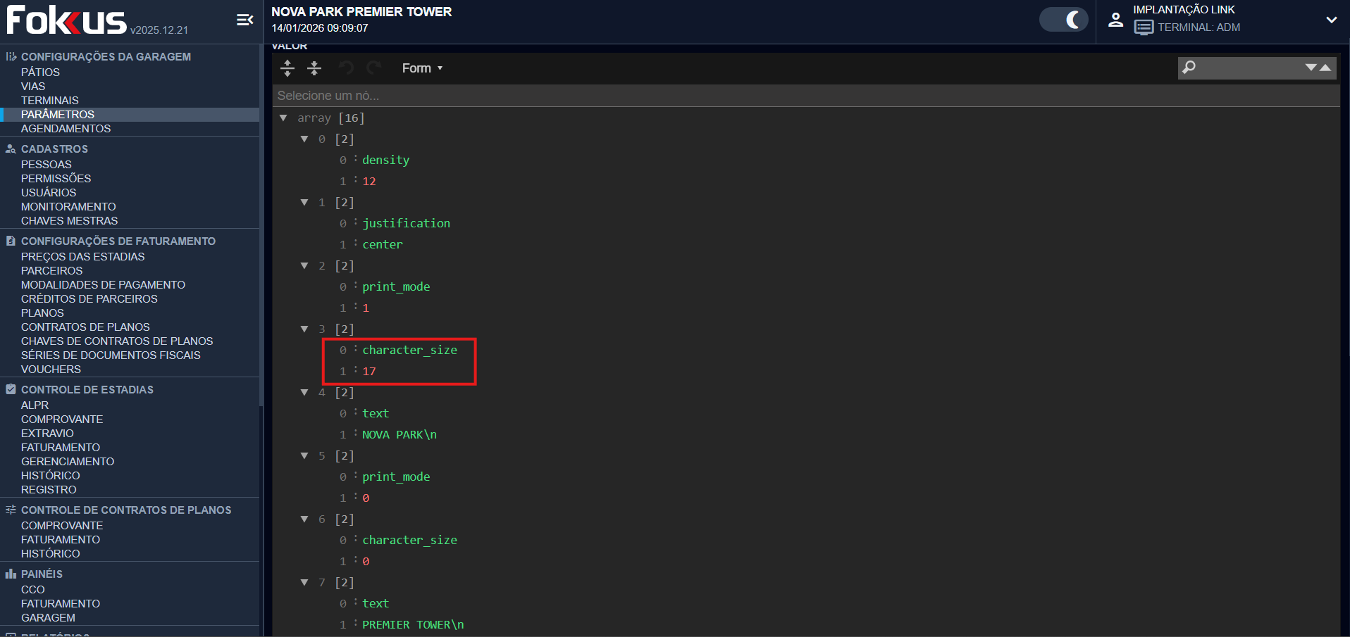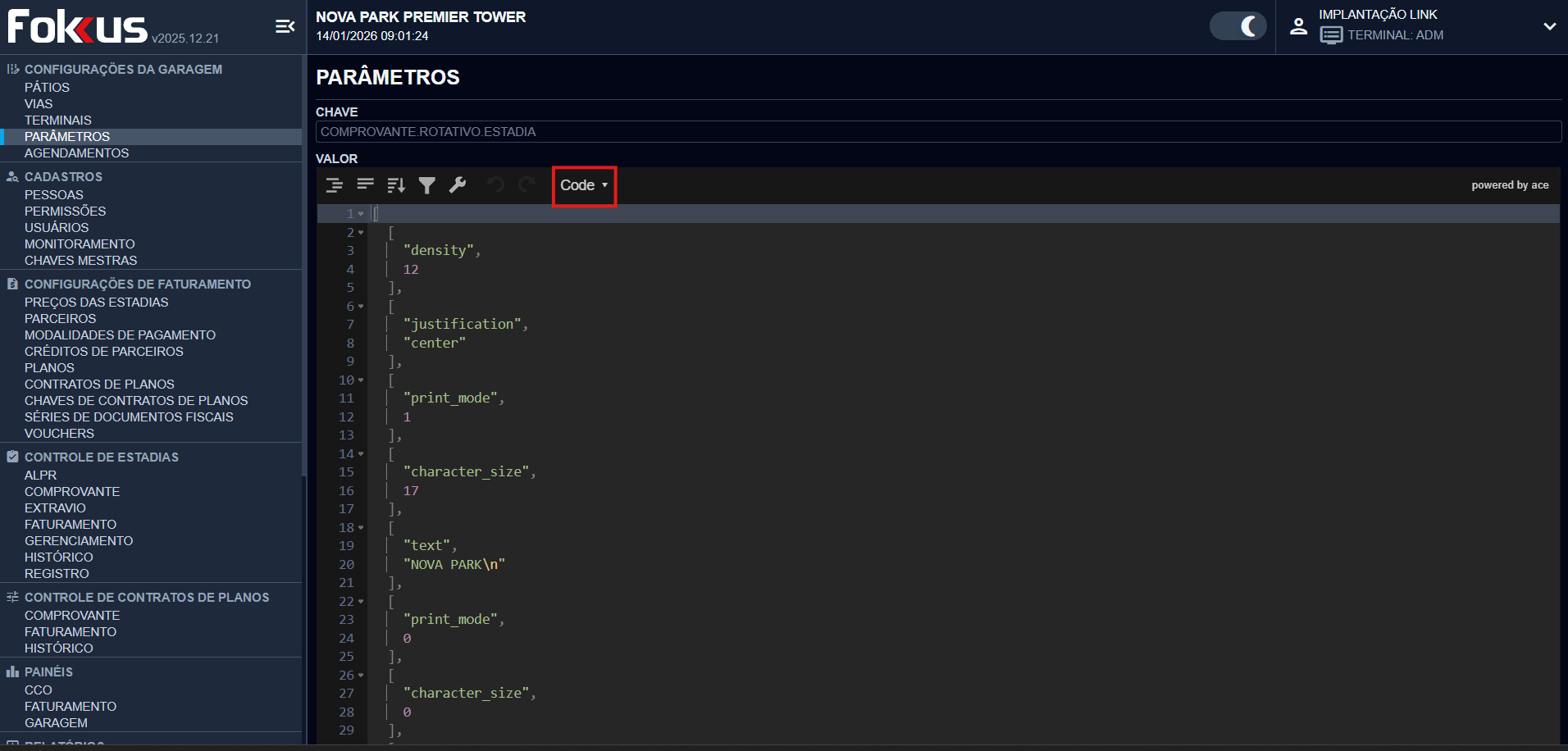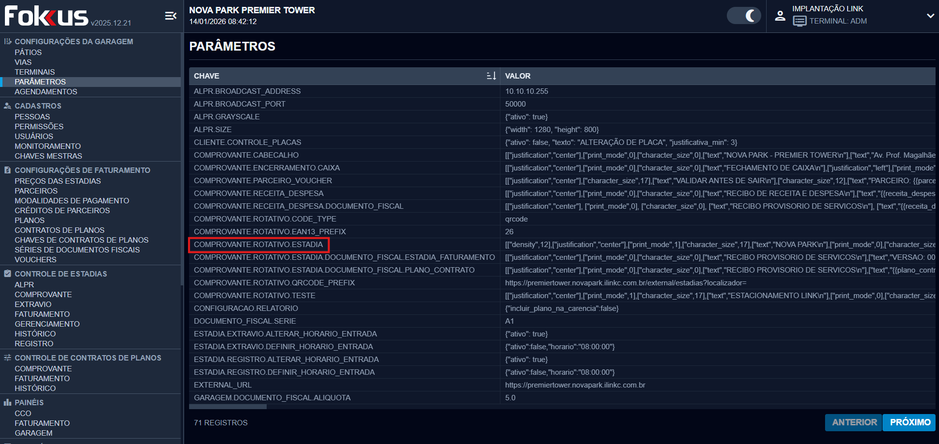 Esse parâmetro é responsável pelas informações exibidas no comprovante rotativo de estadia do estacionamento.