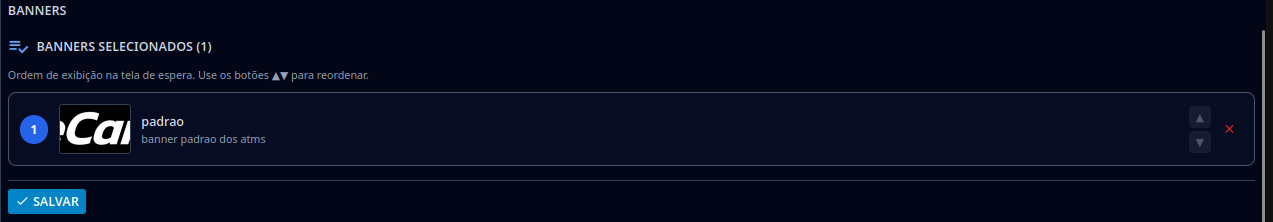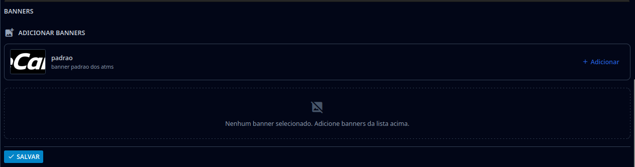 Clique em adicionar no canto diretito do banner desejado (lembre que você pode ter mais de um banner) e clique em SALVAR
