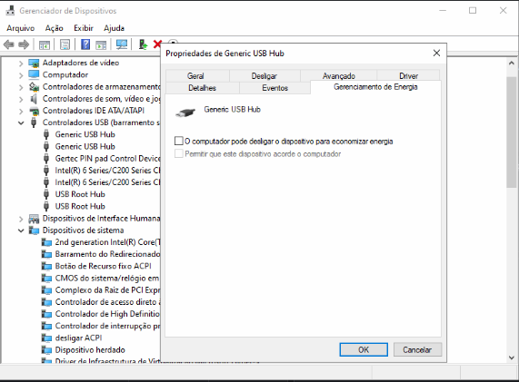 - Configuração de Energia: Desabilite "Permitir que o computador desligue este dispositivo" nas propriedades da porta USB