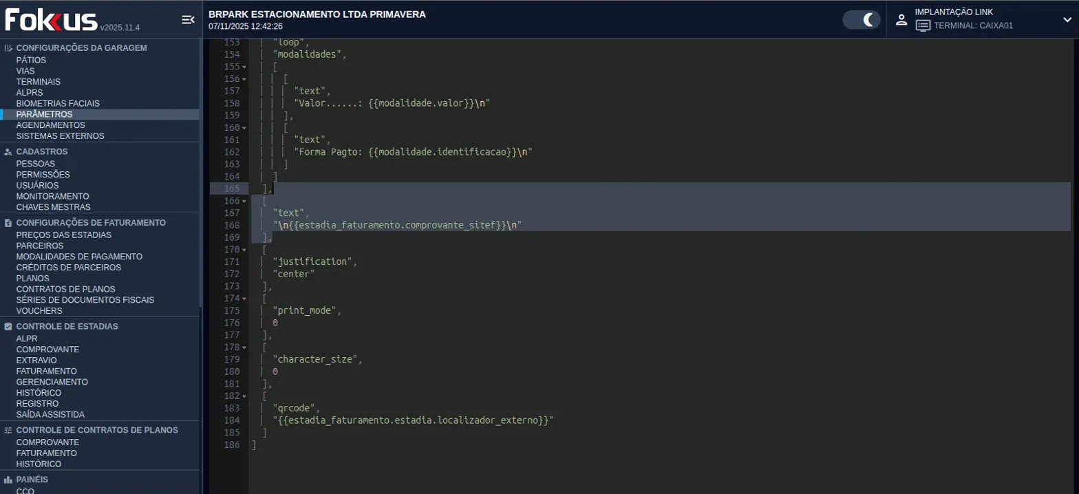 COMPROVANTE.ROTATIVO.ESTADIA.DOCUMENTO_FISCAL.PLANO_CONTRATO - Repita os passos 2 e 3 (editar em modo Code e remover o mesmo bloco do Sitef)