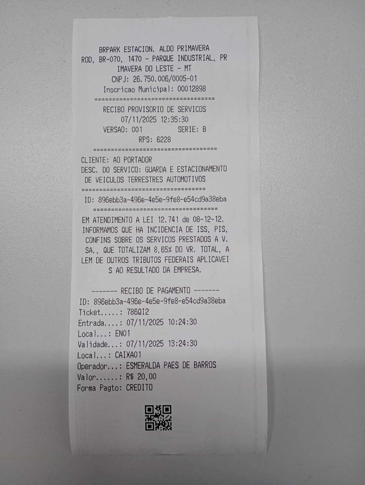 Após as alterações, o recibo deve imprimir de forma mais compacta, contendo apenas: