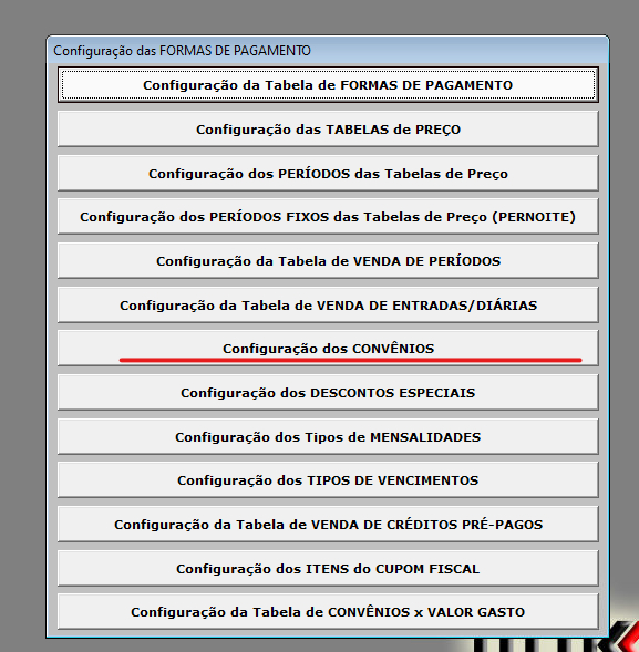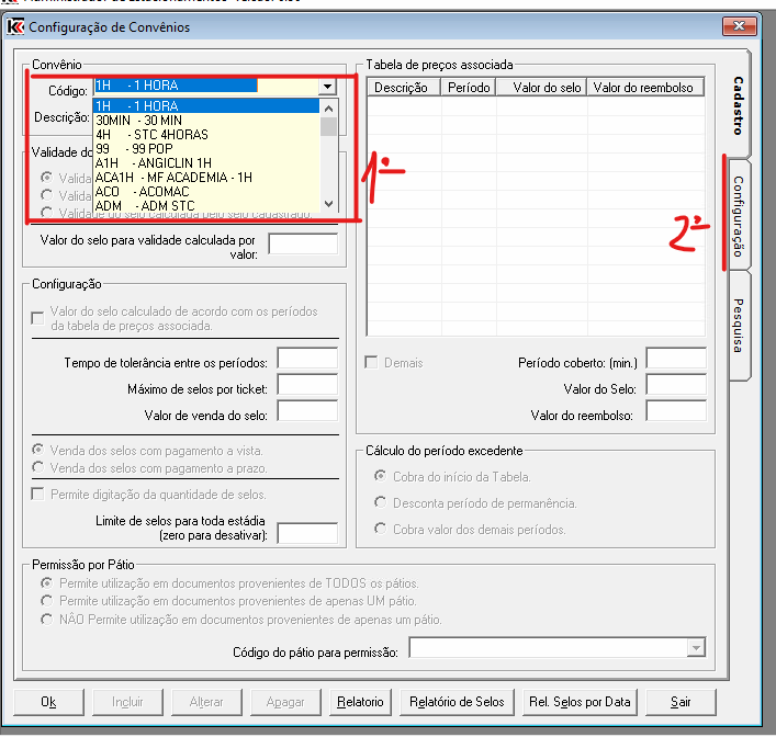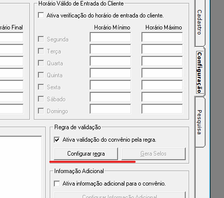 4 - Selecione o convênio na lista, clique em enter 2x, e logo após clique na aba "configuração", na lateral direita