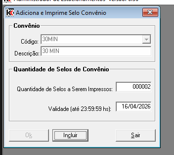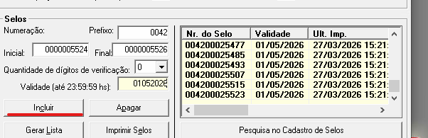 Insira uma quantidade mínima de selos para serem impressos (apenas para teste) e dê enter para auto-preencher o campo de validade.
