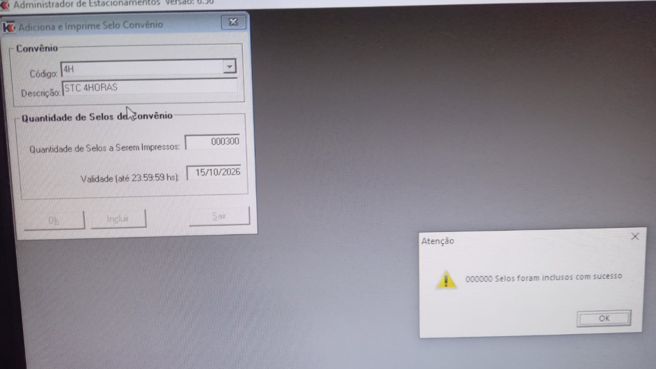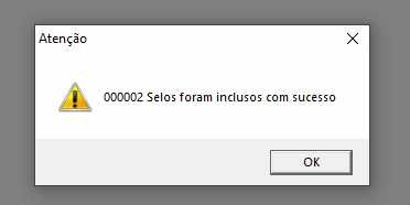 4 - Ao imprimir os selos, a mensagem será exibida em uma janela pop-up com o número que foi preenchido na tela anterior.