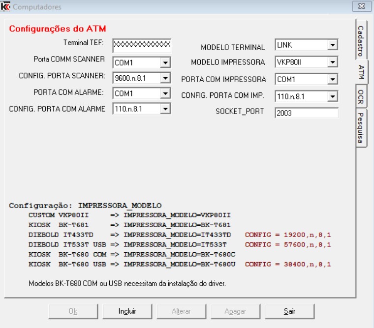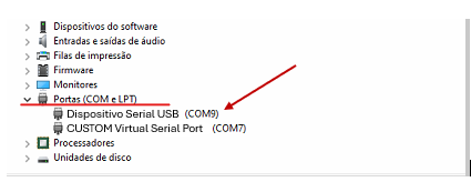 - Caso seja serial, aponte a porta exibida no gerenciador de dispositivos do computador do atm;