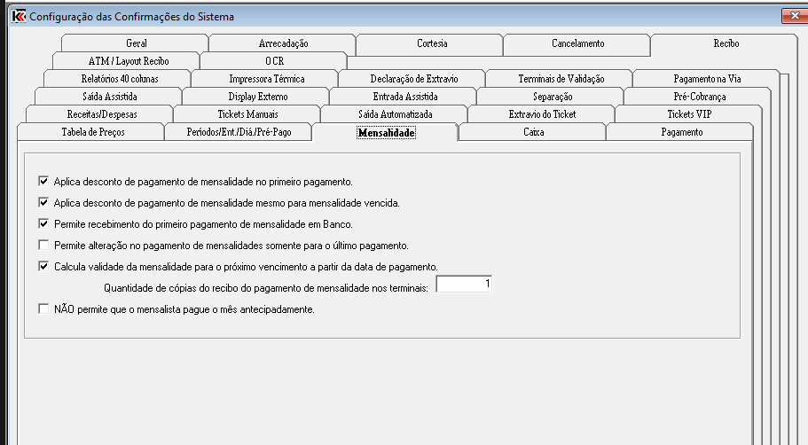 3 - Verifique as opções disponíveis para configuração dos pagamentos de mensalidade e escolha conforme desejar