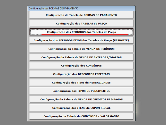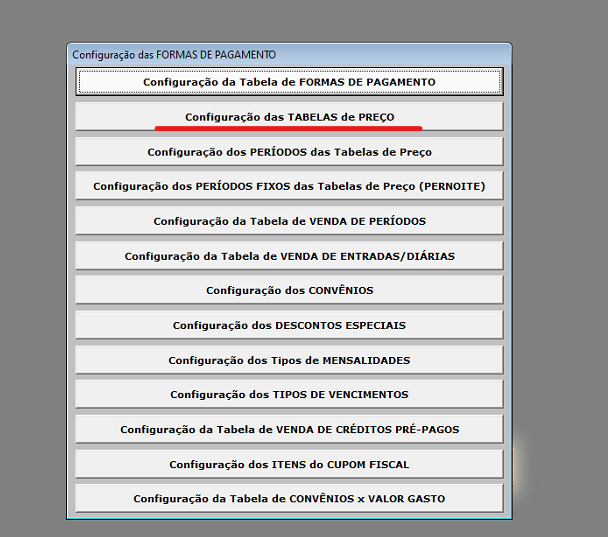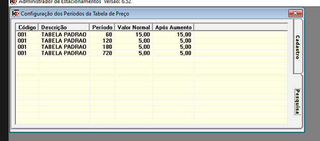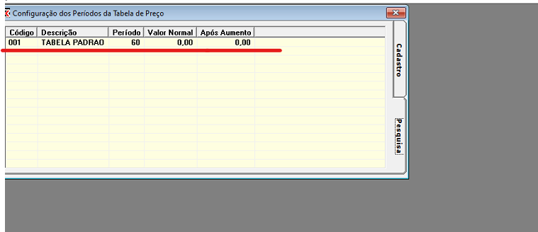 5 - Usando o "esc' do teclado volte ao menu e clique em Períodos das Tabelas de Preço