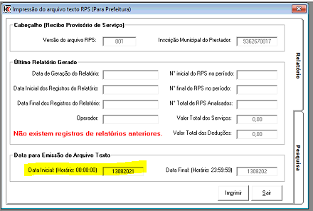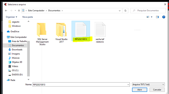 Obs: Sempre gerar o txt do dia anterior no dia seguinte. Ex: O rps de hoje gerar amanhã.