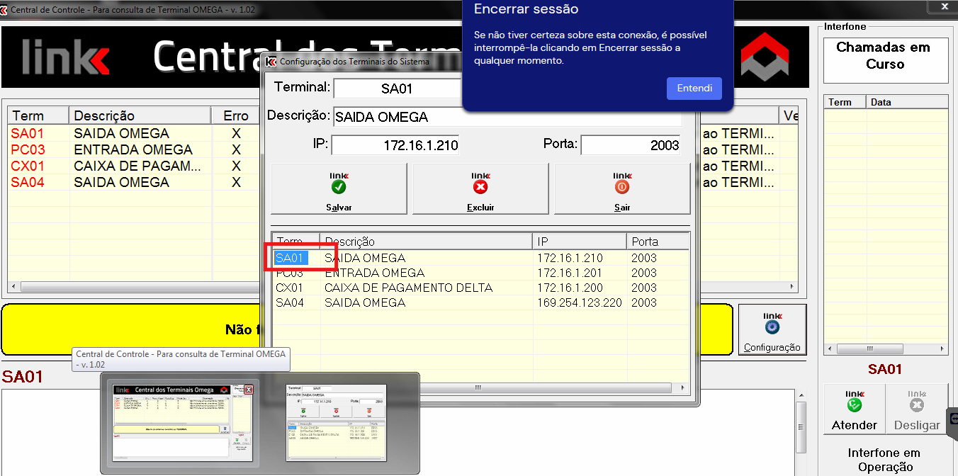 Dê duplo clique sobre o terminal desejado (exemplo: SA01 – Saída Omega) para habilitar a edição das informações.