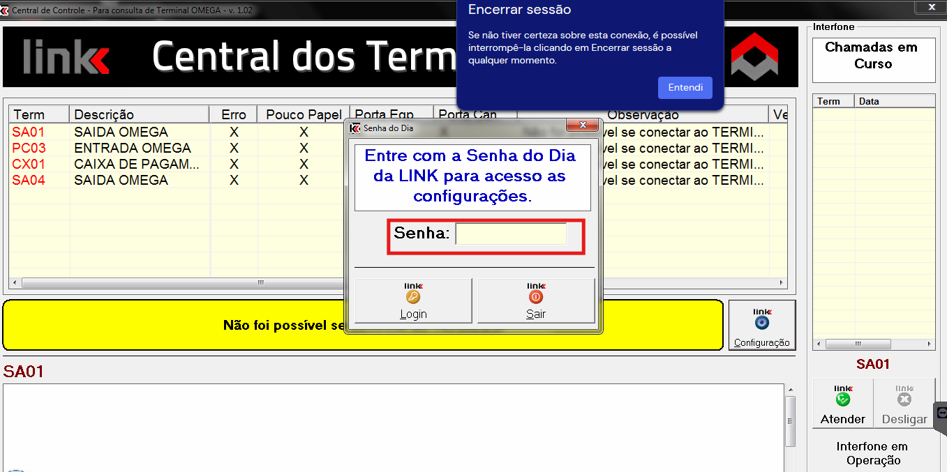 No campo Senha, digite a senha do dia fornecida pela LINK para liberação do acesso às configurações.