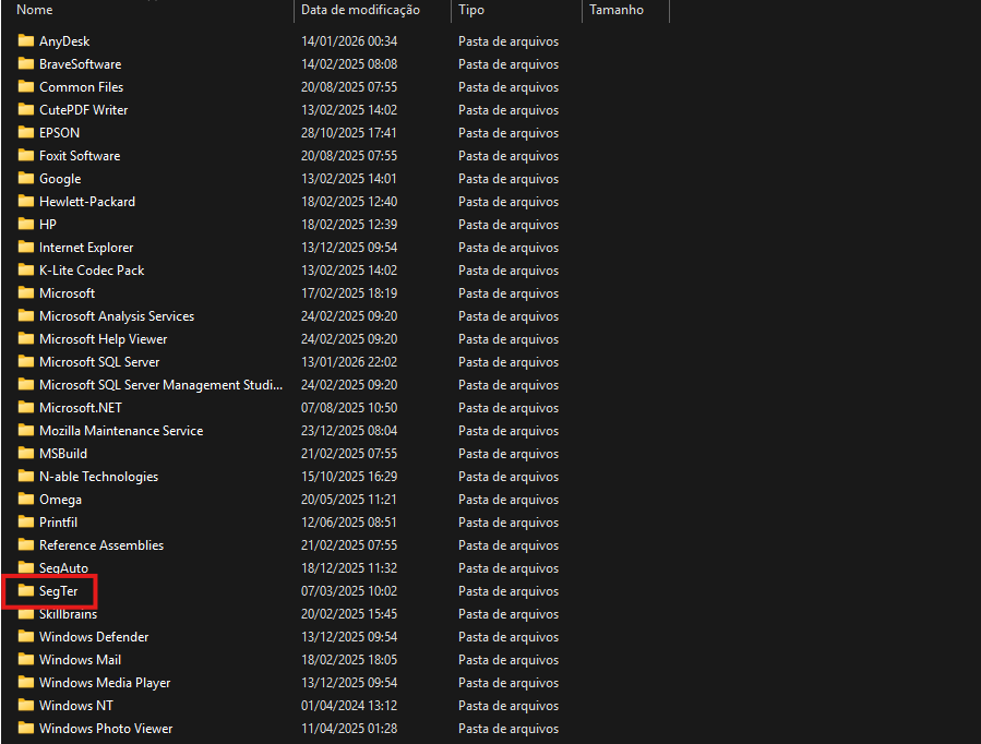 Clique com o botão direito do mouse sobre a pasta SegTer.